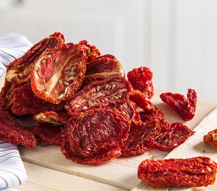 Kurutulmuş domates, salçalık cinsi domateslerin kurutulmuş şeklidir. Domates yaklaşık %94-95 civarında su içerir. Bu sebeple kurutma sonucunda yaklaşık 15 kg domatesten 1 kg kuru domates kalmaktadır. Kurutma esnasında üründeki su buharlaşır ve ürünün öz kısmı kalır. Bu sebeple kuru domatesteki aroma, besin değerleri özellikle karbonhidrat, vitamin, protein oranları çok yükselmiştir. Kg fiyatı verilmiştir.